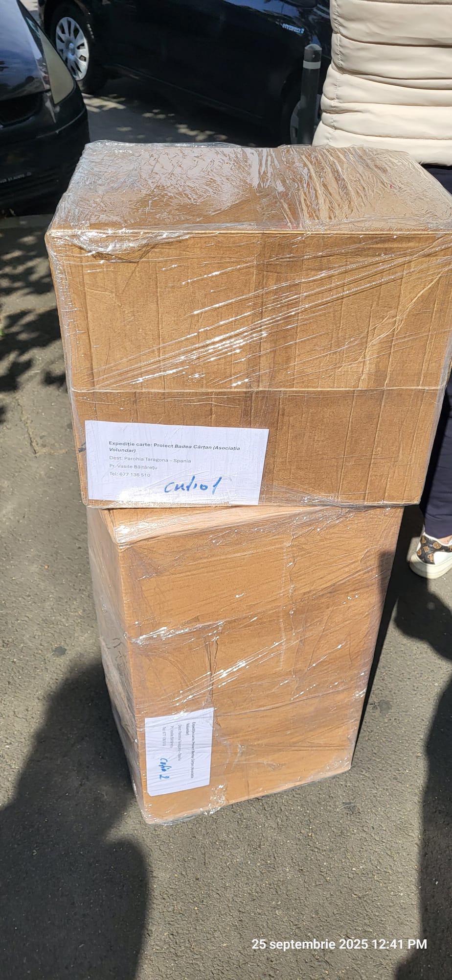 25 septembrie 2025 - primul transport de cărți a plecat către bibliotecile Badea Cârțan din Spania.
