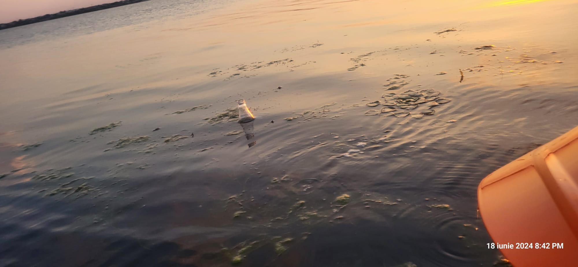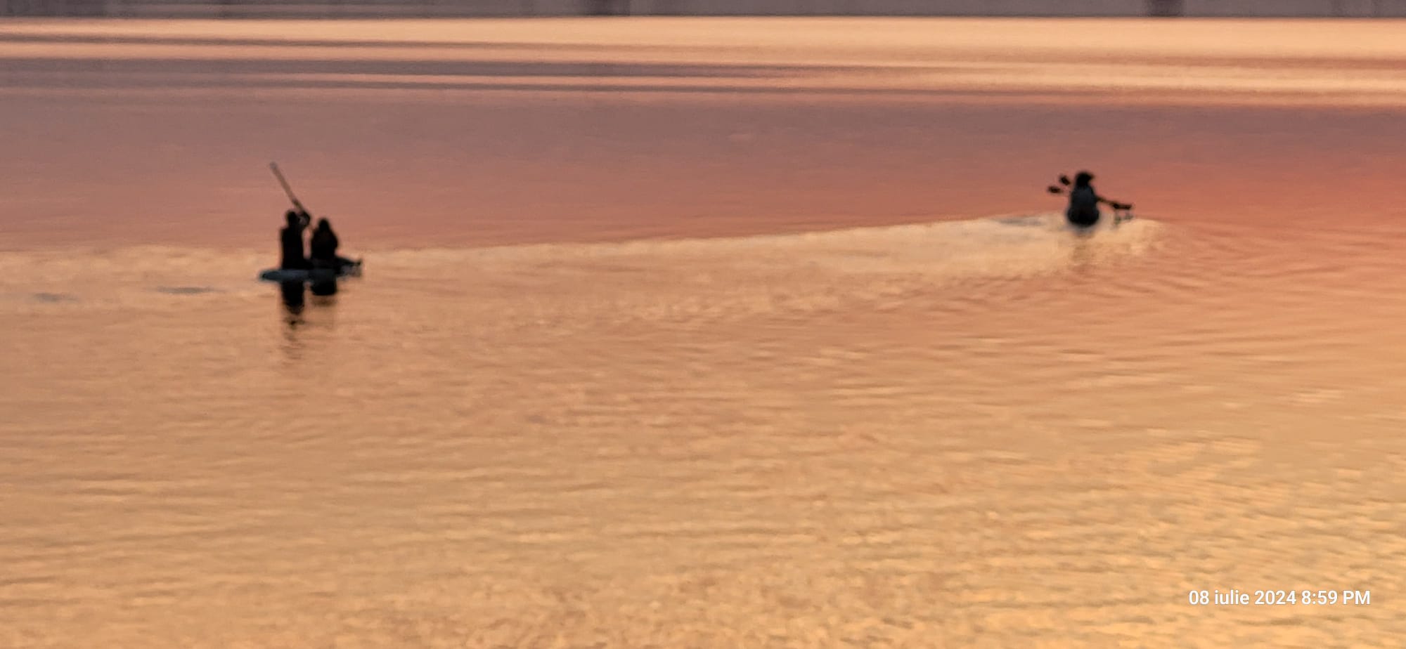 18 iulie 2024 - ne acomodăm cu ieșirea pe apă cu caiacele și am ”profitat” pescuind 50 de bani odata cu o sticlă de cola aruncată în apă.