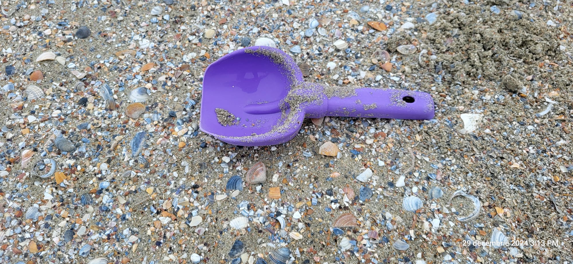 Lopatica de mai jos urma sa devina plastic inghitit de ape. Voluntarii VolunDar au cules-o, si alaturi de niste sfori pe care le vom transforma in corzi de sarit, urmeaza sa fie curatate si daruite unor copii cu chef de joaca.