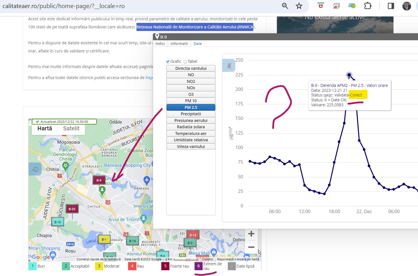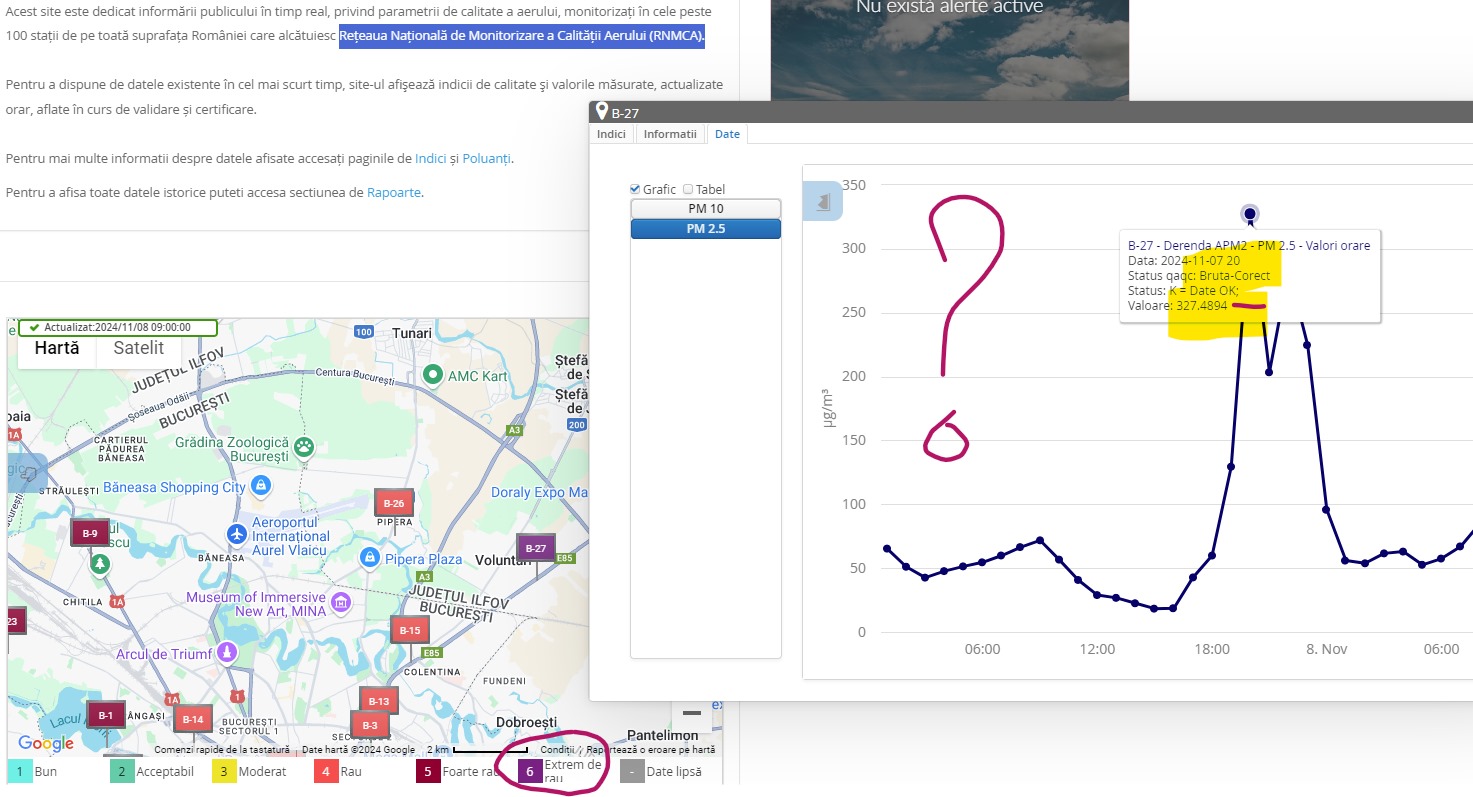 7 noiembrie 2024 - Calitatea aerului clasificata cu codul VIOLET de POLUARE a AERULUI in nordul Bucurestiului conform raportului oficial emis de Rețeaua Națională de Monitorizare a Calității Aerului (RNMCA) - a Ministerului Mediu.